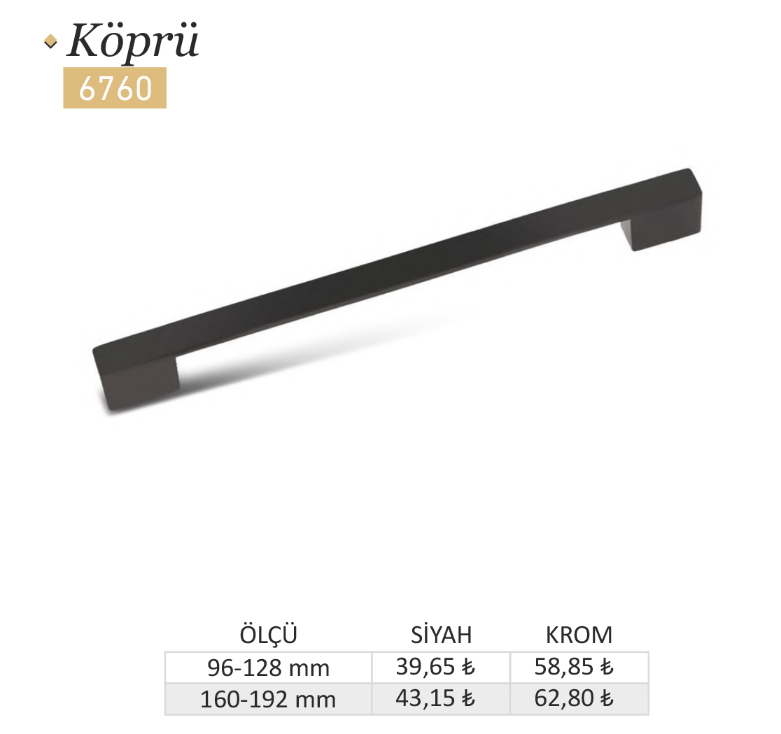 Köprü 6760, Zamak Mobilya Kulpları alanında estetik tasarımıyla ve şık görünümüyle öne çıkıyor. Özenle tasarlanan bu model, yaşam alanlarınızı güzelleştirmek için özel olarak üretildi. Detaylara verilen önem, ürünün her köşesinde hissedilir.